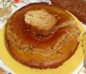 Depois de cozido retire do forno e desenforme para um prato. Deixe arrefecer.